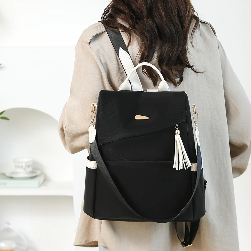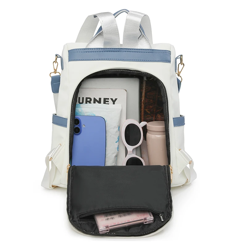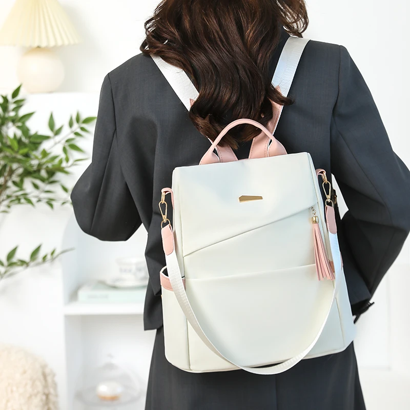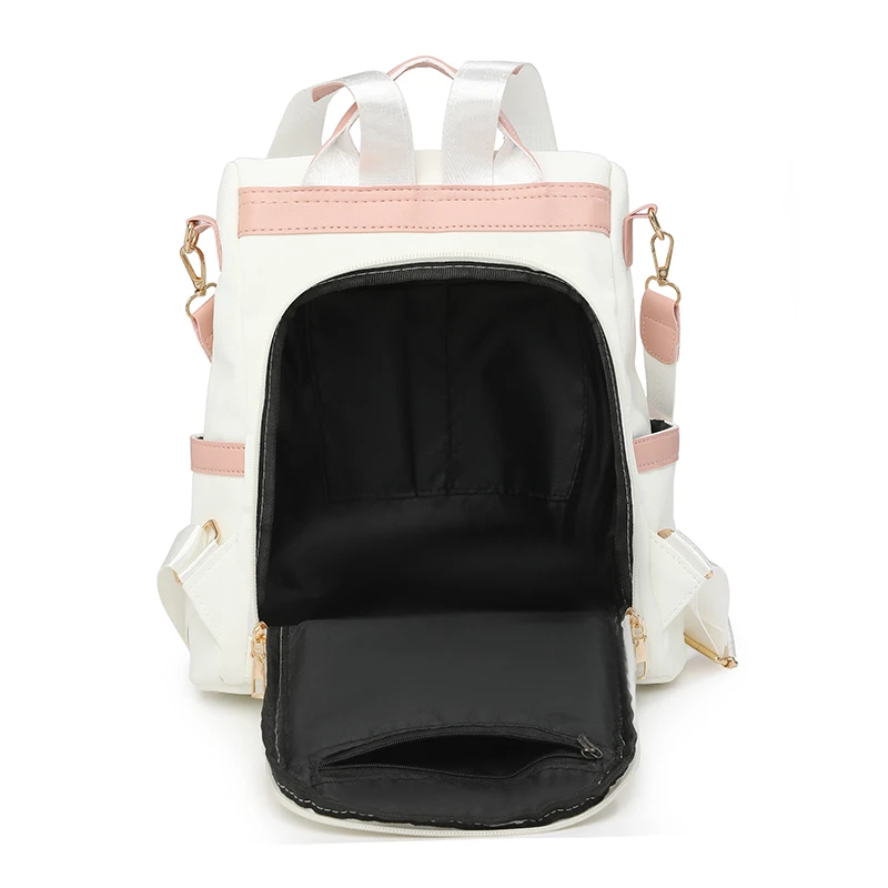 Newest Trending Portable Waterproof Anti-theft PU Luxury Backpack Color Contrast Double Shoulder Bags Unique Design Women's